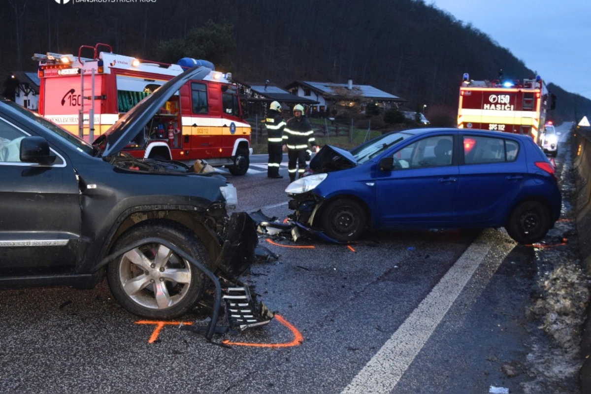 FOTO: Pri Novej Bani došlo k vážnej nehode, čelne sa zrazili dve autá, obaja vodiči skončili v nemocnici