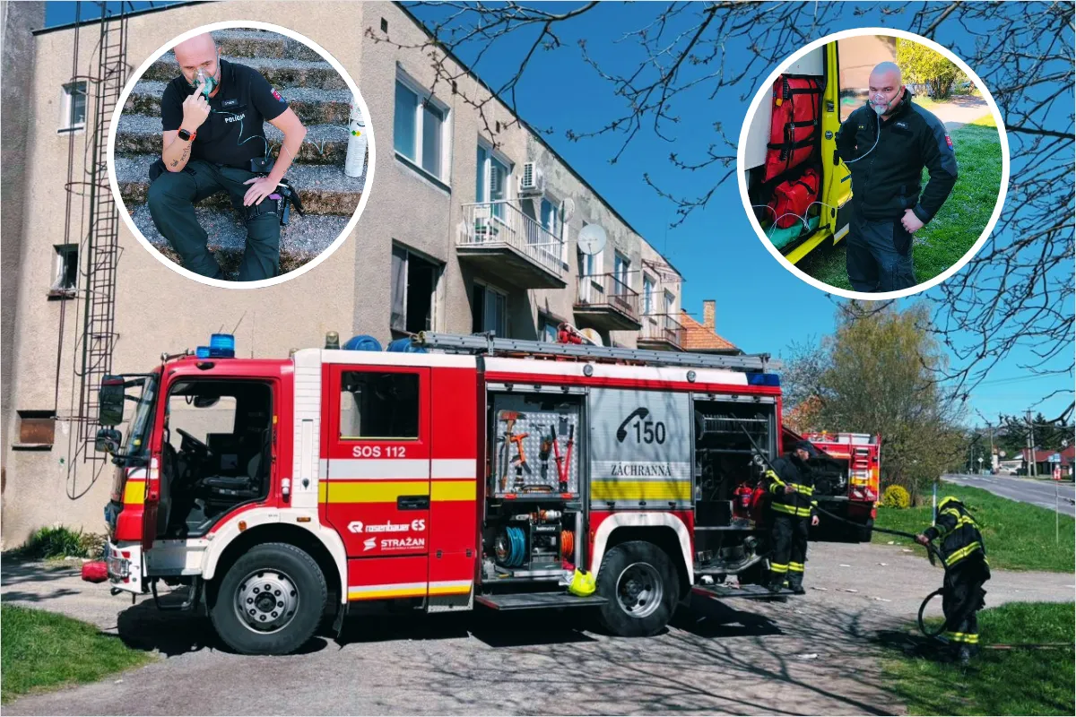 FOTO: Hrdinskí policajti zachránili v poslednej chvíli dve osoby z horiaceho bytu pri Veľkom Krtíši
