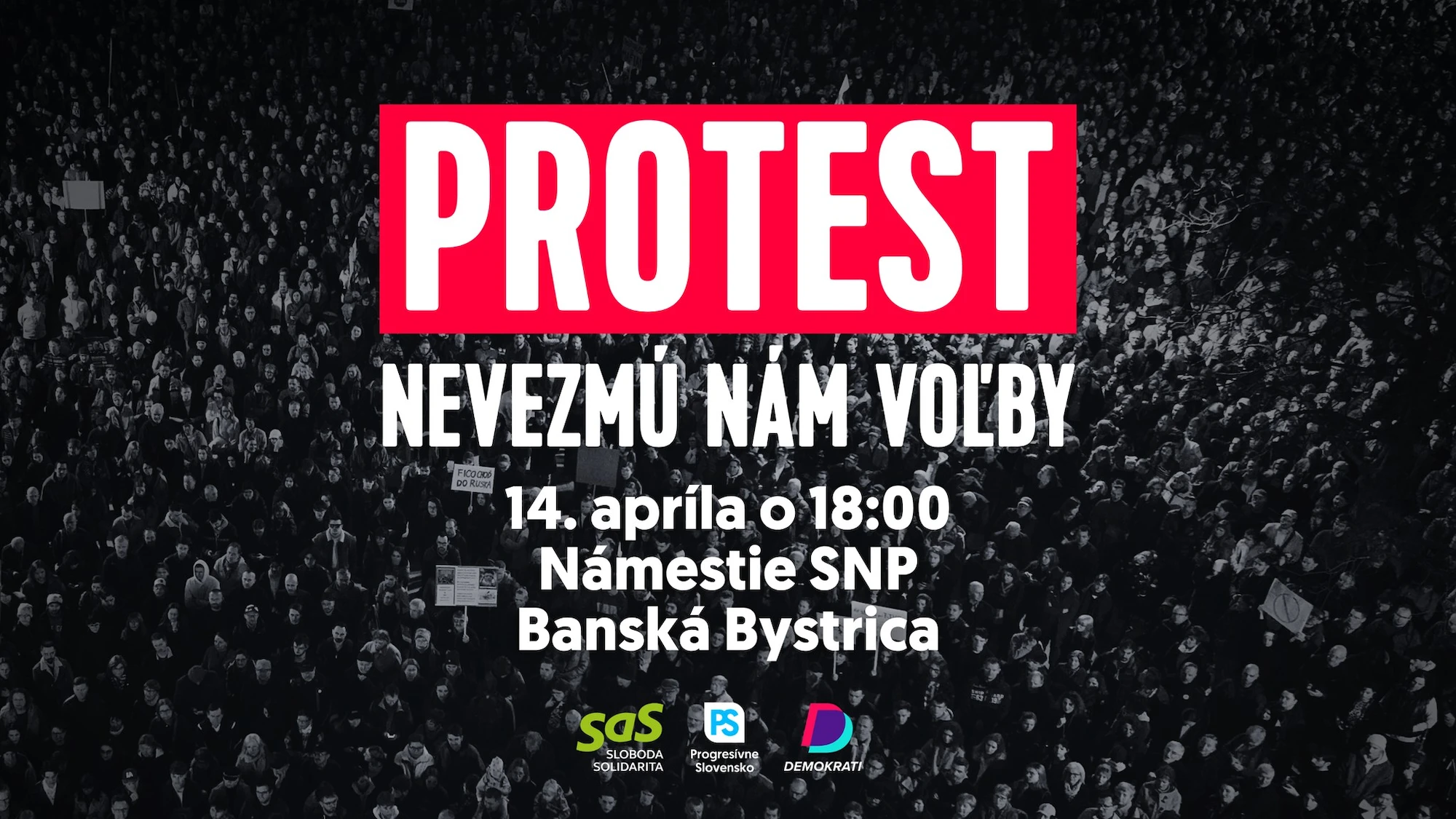 V Banskej Bystrici sa v utorok 14. apríla uskutoční protest s názvom Nevezmú nám voľby. Zhromaždenie je naplánované na 18:00 hod. na Námestí SNP a organizuje ho politické hnutie Progresívne Slovensko spolu s ďalšími opozičnými stranami SaS a Demokrati.