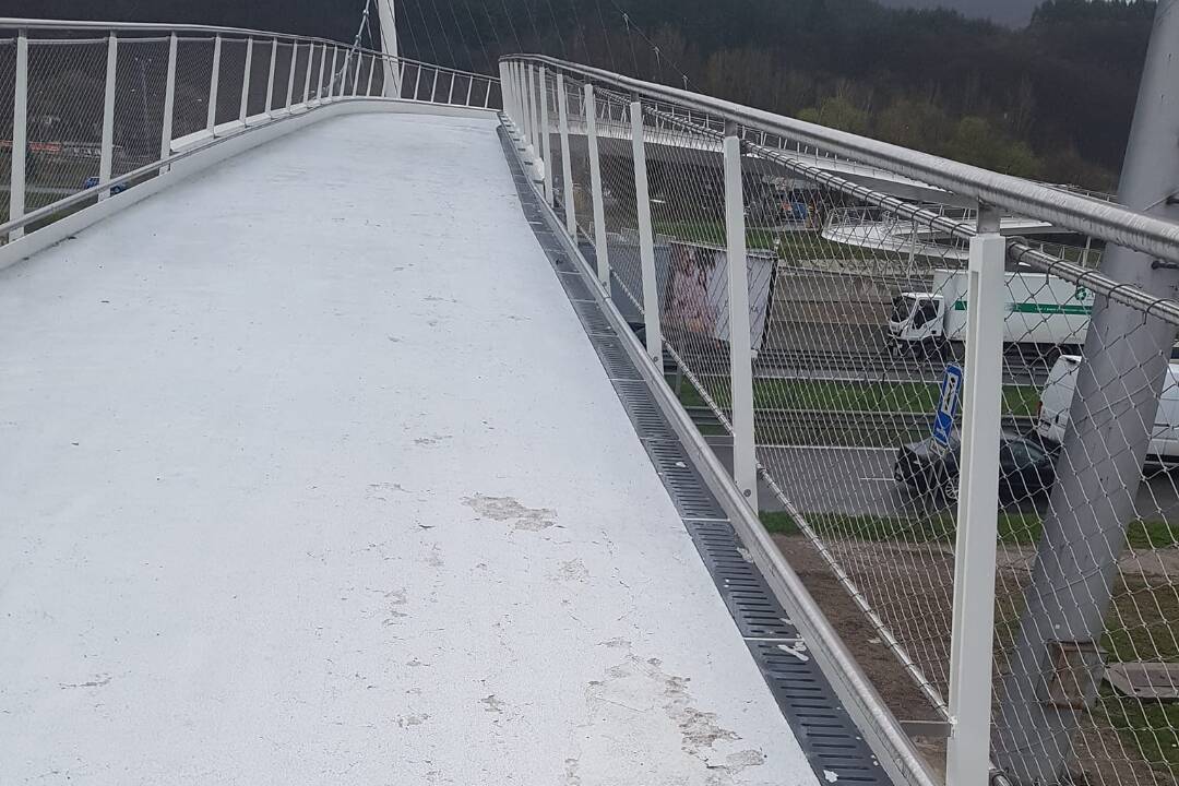 Obyvateľ Banskej Bystrice pridal do facebookovej skupiny týkajúcej sa života v meste fotku, ku ktorej sa muselo vyjadriť aj samotné mesto. Je na nej zachytený cyklomost, na ktorom je poškodený protišmykový náter. Údajne jeho životnosť nebola ani jeden rok.