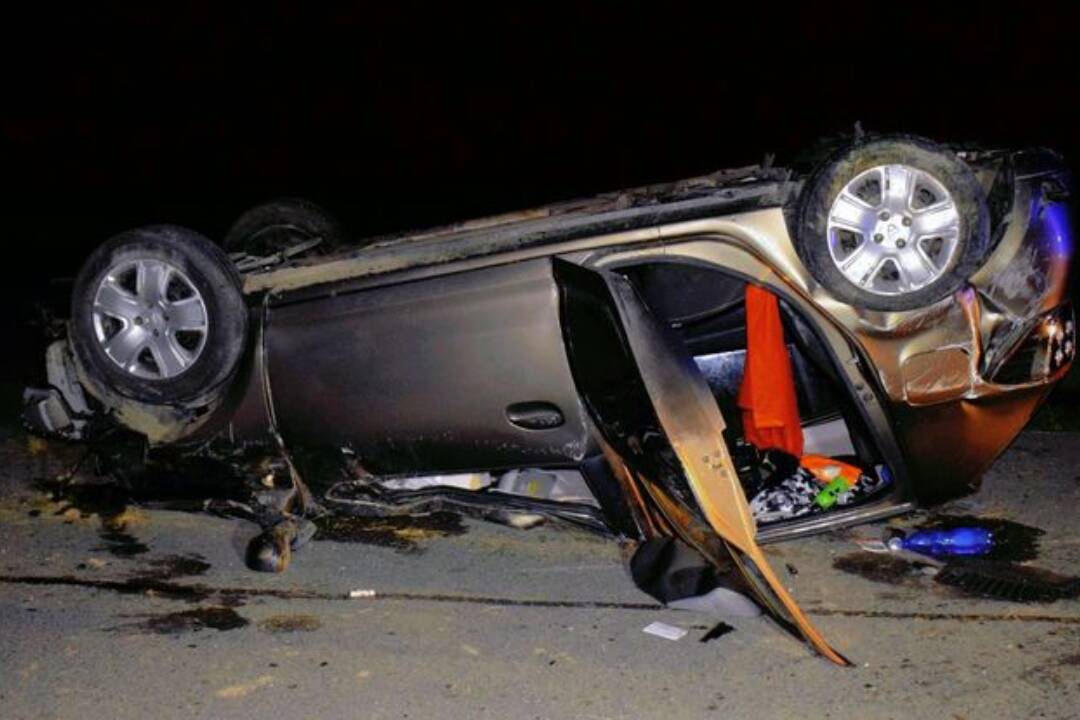 FOTO: Auto skončilo prevrátené na streche. Opitá vodička havarovala medzi obcami Semsúrov a Veľký Blh