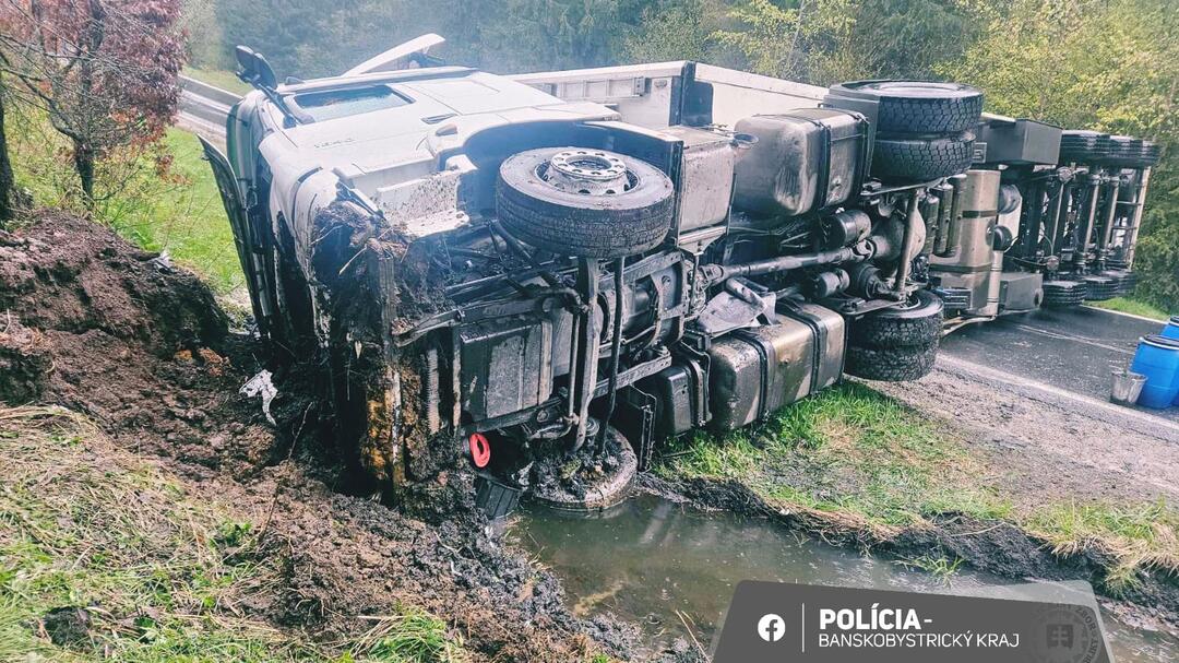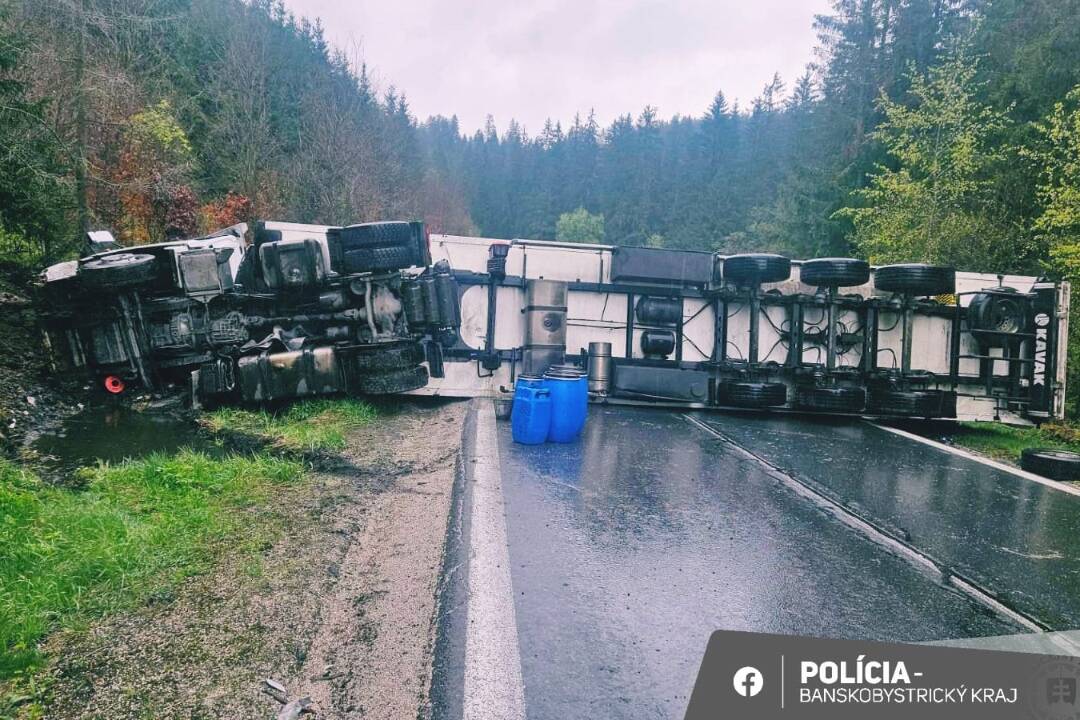 V okrese Kremnica je neprejazdná cesta. Vážna nehoda kamióna