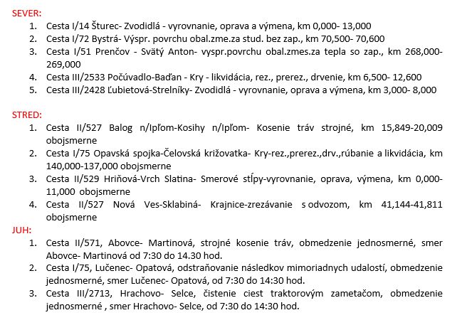 „Dňa 24.04.2024 budú na cestách Banskobystrického kraja realizované nasledovné výkony, ktoré by mohli obmedziť plynulosť cestnej premávky. Jazdite opatrne,“ uviedla BBRSC.
