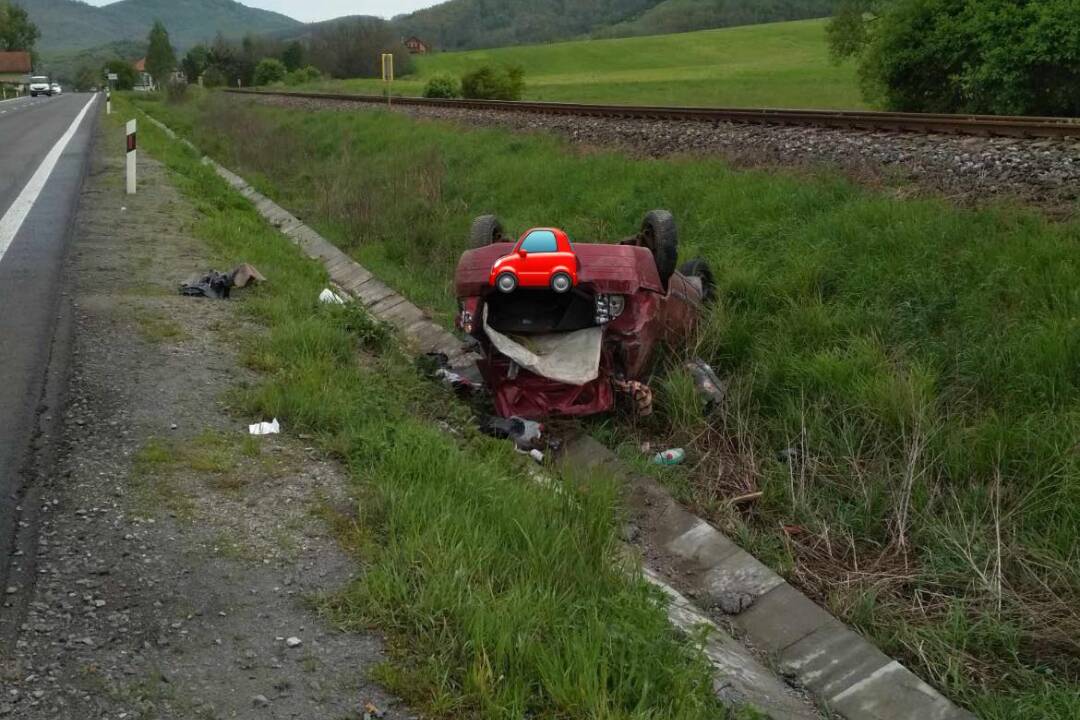 Dopravná nehoda pred obcou Podzámčok pri Zvolene. Auto skončilo na streche