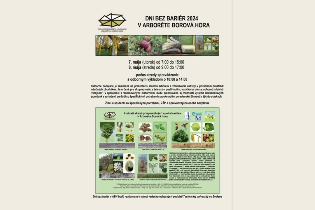 Dni bez bariér v Arboréte Borová hora sa uskutočnia v utorok 7. mája a v stredu 8. mája. Pozvánku mesta nájdu záujemcovia aj na sociálnej sieti mesta Zvolen.