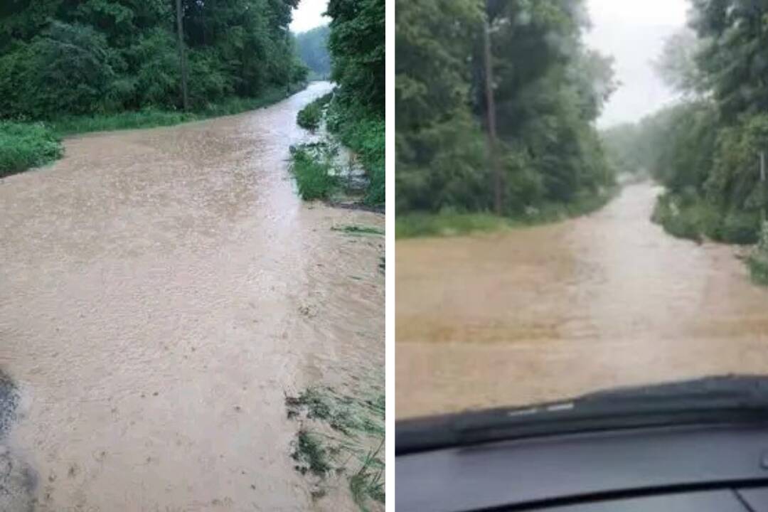 Hontianske Nemce zasiahla povodeň. Voda zaplavila cestu, ktorá bola neprejazdná