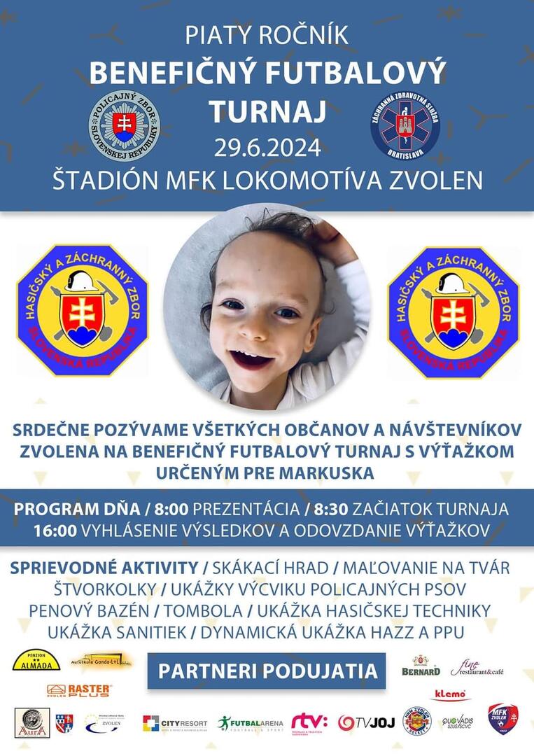 „Už tento víkend sa uskutoční piaty ročník futbalového turnaju, ktorého podstata je spojenie záchranných zložiek a ostatných pre dobrú vec. Výťažok z turnaja bude určený pre bojovníka Markuska,“ napísali hasiči na sociálnej sieti.