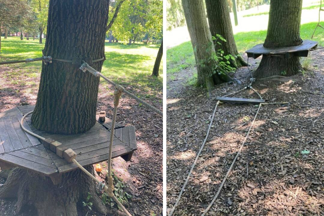 Ako uvádza mesto, v parku Š. Moysesa došlo k poškodeniu lanovej dráhy. Zničená časť bola opáskovaná a čaká na opravu, ktorú má vykonať zriaďovateľská firma.
