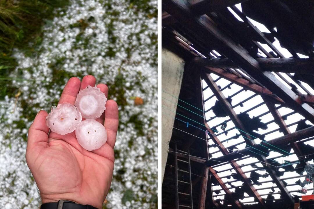 FOTO: V Brezne rátajú škody po silnej búrke. Krúpy zničili mnohé strechy, okná či kostol