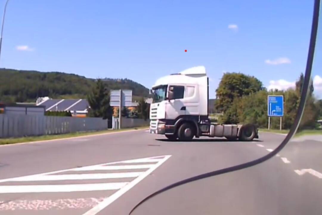 Kamionista evidentne zle odhadol situáciu a pohol sa vpred. Na cestu ale vychádzal príliš pomalou rýchlosťou, čím ohrozil iné autá. Vodič idúceho osobného vozidla ho musel obísť zídením z hlavnej cesty.
