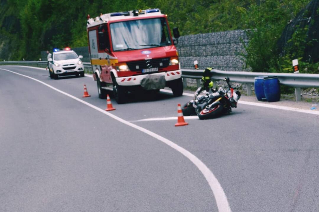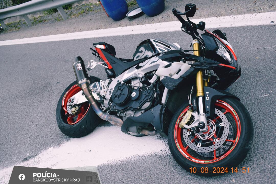Mladý 24-ročný vodič motocykla z doteraz nezistených príčin dostal šmyk, spadol na vozovku a nasledoval náraz do zvodidiel. Pri nehode utrpel ľahšie zranenia, jeho 23-ročná spolujazdkyňa sa zranila ťažko.