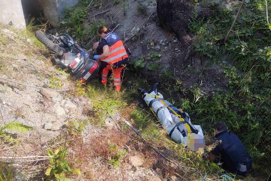 Záchranári ihneď vyrazili na miesto nehody. Motorkára sa však podarilo nájsť až na niekoľký pokus pár metrov pod cestou, z ktorej nebol viditeľný. Pri páde utrpel úraz chrbtice a ďalšie poranenia.