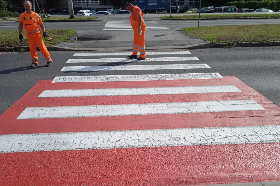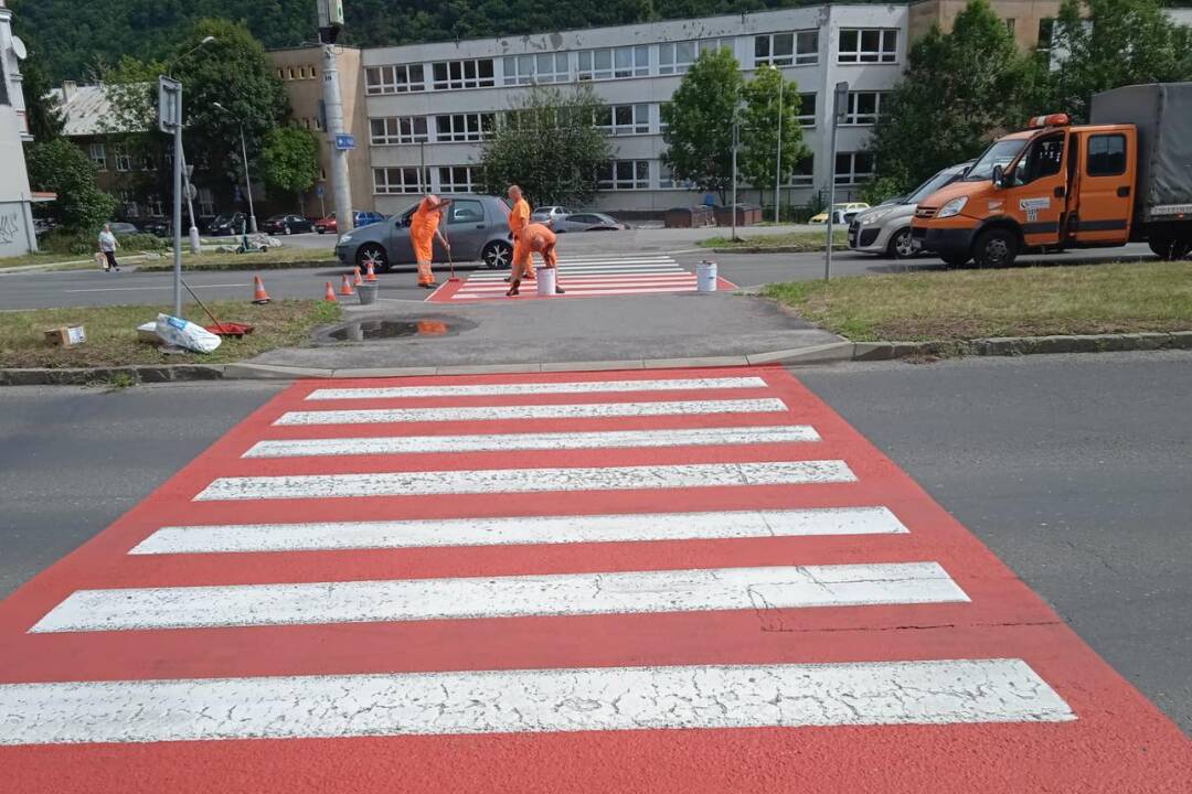 FOTO: V Banskej Bystrici zvýraznili priechod pre chodcov červenou farbou. Aký je dôvod?