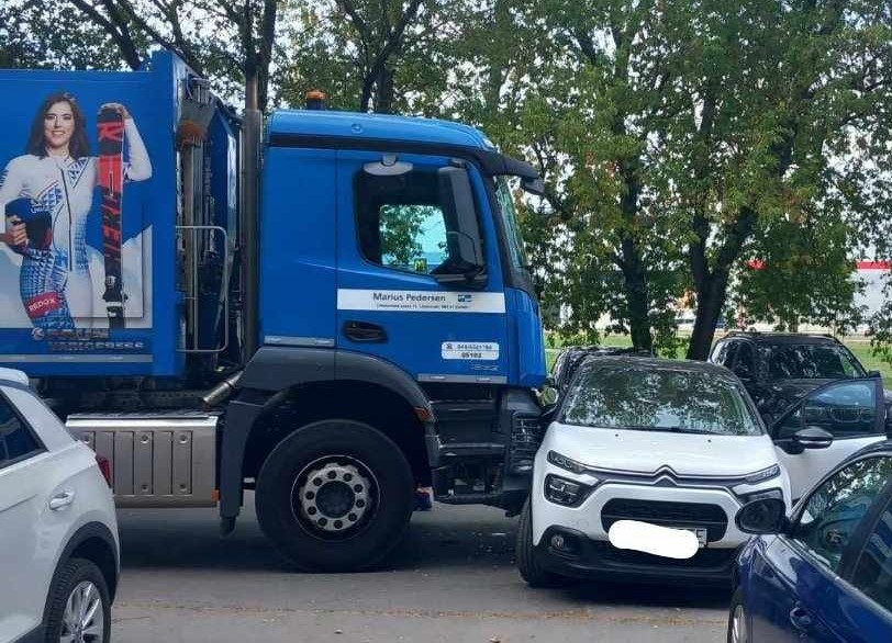 Zo záberu je jasné, že sa na parkovisku zrazilo smetiarske auto s osobným vozidlom. „Vyzerá to tak, že vodič vycúval vo chvíli, keď ho smetiar nemal šancu vidieť tesne pred sebou. Kto nesedel v takom aute, ten nepochopí, čo znamená mŕtvy uhol,“ komentovala príspevok Daniela.