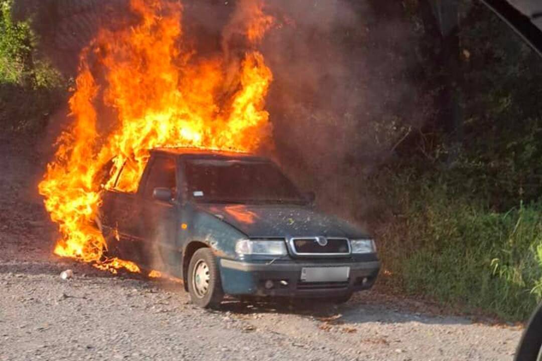 FOTO: Pri Banskej Štiavnici horelo staršie auto. Felicia ohník či elektro, vtipkujú ľudia na internete