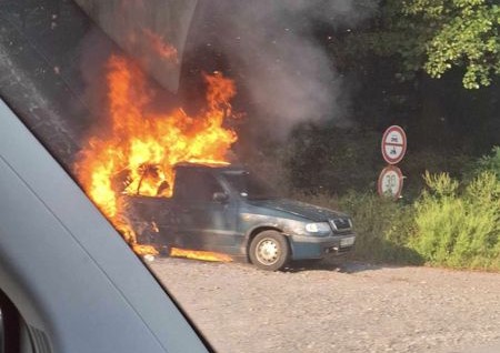 Neďaleko Banskej Štiavnice došlo v pondelok v poobedňajších hodinách k požiaru vozidla Škoda Felicia, ktoré malo martinskú „ŠPZ-ku“. Autentické fotografie pridal na sociálnu sieť okoloidúci vodič s popisom: „Pozor, horiace auto pred Kozelníkom.“
