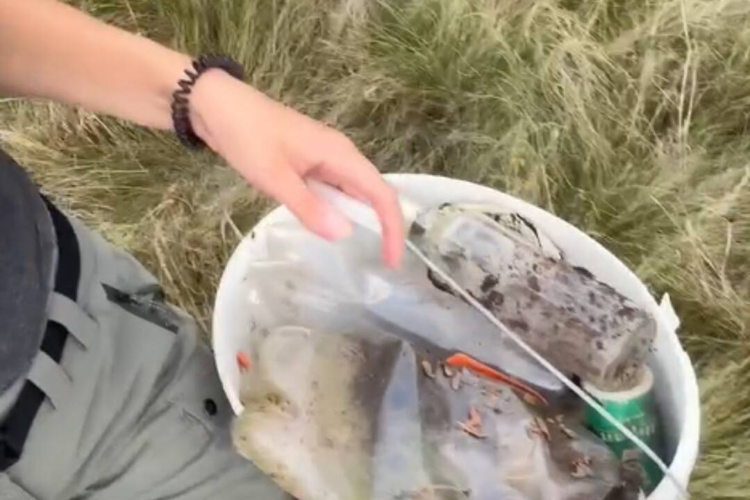 Najskôr sa jej podarilo nájsť prázdne vedro, do ktoré postupne ukladala svoje ďalšie „úlovky.“ Boli nimi rôzne plastové alebo sklenené fľaše, kusy plastu či dokonca stará topánka.