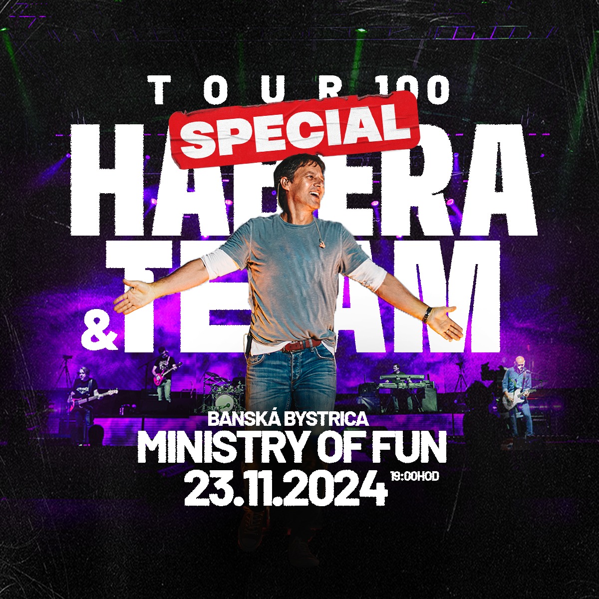 Pôjde tak o bonusové vystúpenie pod názvom HABERA & TEAM TOUR 100 SPECIAL iba pre 999 najvernejších a zároveň najrýchlejších fanúšikov v najväčšom a najmodernejšom klube na Slovensku Ministry of Fun v Banskej Bystrici.