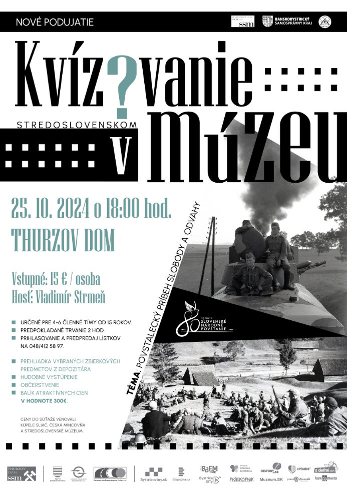 Stredoslovenské múzeum v Banskej Bystrici pozýva na jedinečné podujatie „Kvízovanie v múzeu“, ktoré sa uskutoční 25. októbra o 18:00 hod. v majestátnom Thurzovom dome. Ak máte radi históriu a chcete si preveriť svoje vedomosti v spoločnosti priateľov, toto podujatie je ako stvorené pre vás.