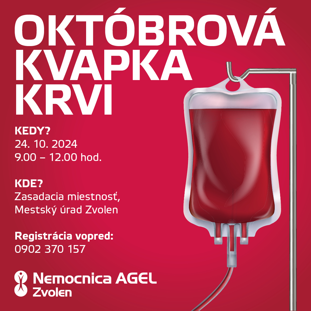 Vo štvrtok 24. októbra sa vo Zvolene uskutoční Októbrová kvapka krvi, ktorá pozýva všetkých záujemcov vrátane tých, ktorí ešte nikdy krv nedarovali. Darovanie krvi je neoceniteľným gestom, ktoré môže zachrániť ľudský život a pomôcť tým, ktorí to najviac potrebujú.