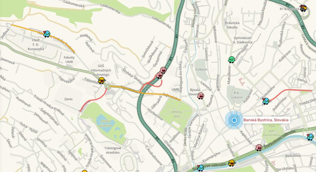 Prehľad ranných zápch v Banskej Bystrici, Zdroj/waze.com