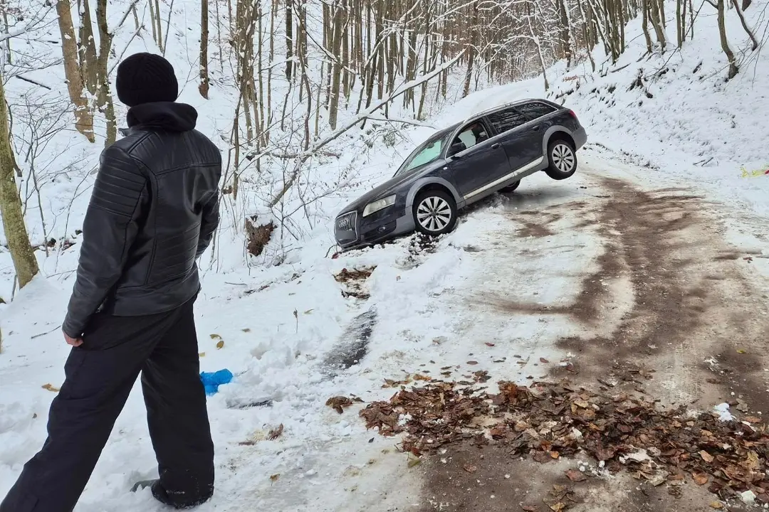 Na ceste z Krupiny do Svätého Antona zišlo auto z cesty. Úsek je neprejazdný
