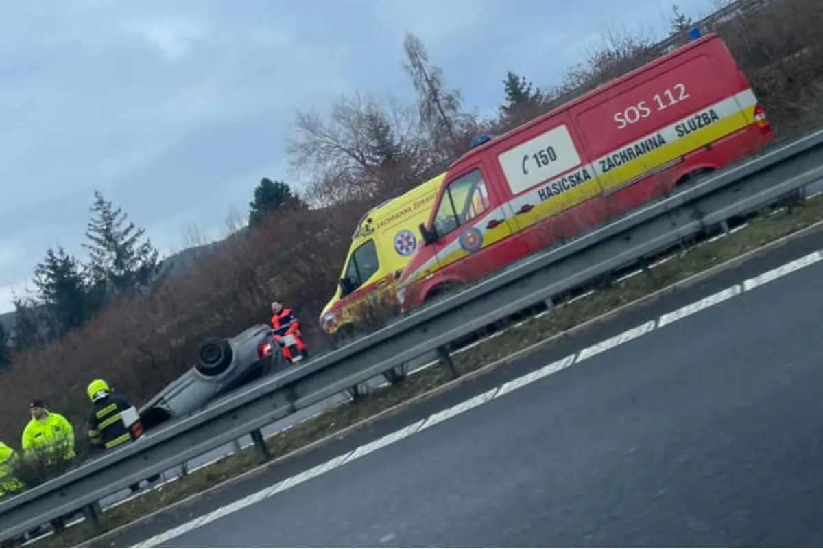 Na R1 skončilo auto na streche, pre nehodu uzavreli výjazd z Banskej Bystrice