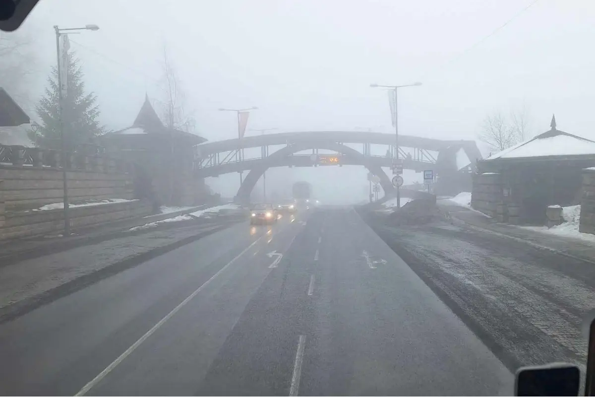 Na Donovaloch je hmlisto, vozovka je mokrá. Buďte ostražití