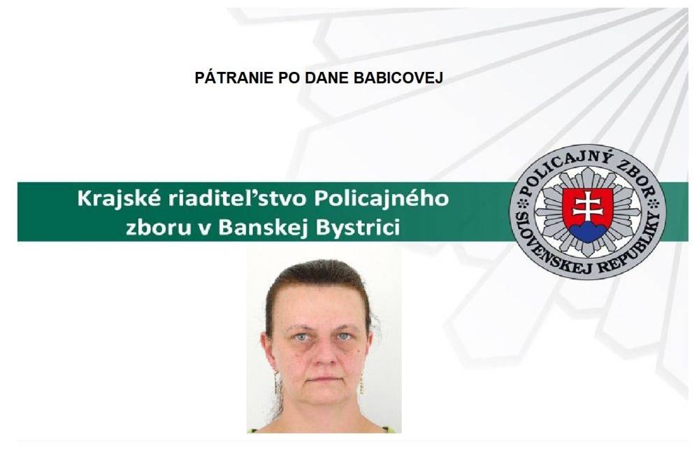 Zvolenská polícia prosí občanov o pomoc a spoluprácu pri pátraní po hľadanej 50-ročnej Dane Babicovej zo Sásy. Polícia žiada občanov, aby akékoľvek informácie o hľadanej žene oznámili na t. č. 158, alebo na najbližšom útvare PZ.