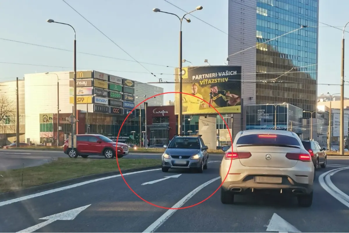 Na kruhovom objazde pri ESC v Banskej Bystrici sa vodič zo Žarnovice ocitol v nečakanej situácii – vybral si nesprávny výjazd a namiesto správneho smeru skončil v protismere. Namiesto toho, aby cúval a opravil svoju chybu, rozhodol sa pre iné riešenie - jednoducho prešiel cez ostrovček do správneho pruhu.