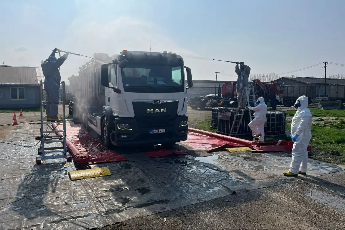 Všetky vozidlá prechádzajúce cez bývalé hraničné priechody medzi Bratislavou a Slovenskými Ďarmotami – Balassagyarmatom musia ponovom absolvovať dezinfekciu pomocou brodov alebo brán.