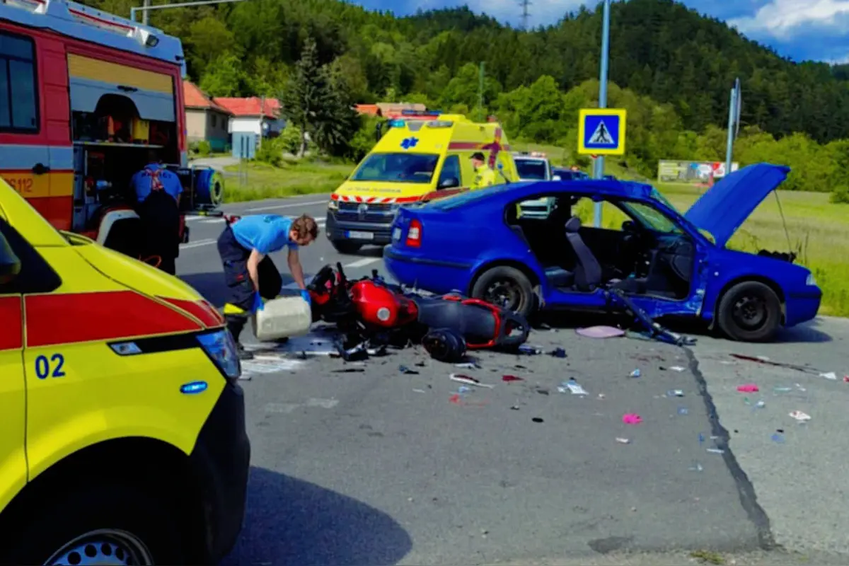 Na mieste nehody osobného vozidla a motocykla sa nachádzali tri zranené osoby, ktorým posádky poskytli neodkladnú zdravotnú starostlivosť a po ošetrení bol jeden pacient s ťažkými zraneniami prevezený letecky do Banskej Bystrice.