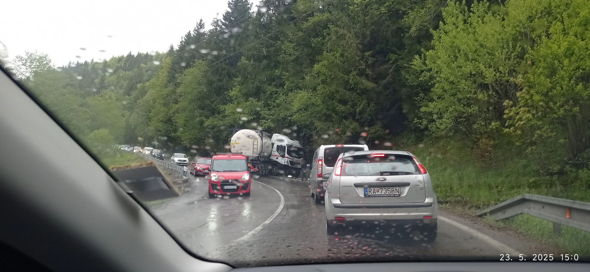 V stúpaní z Jarabej na Čertovicu havaroval kamión, vyteká z neho nafta, rátajte so zdržaním