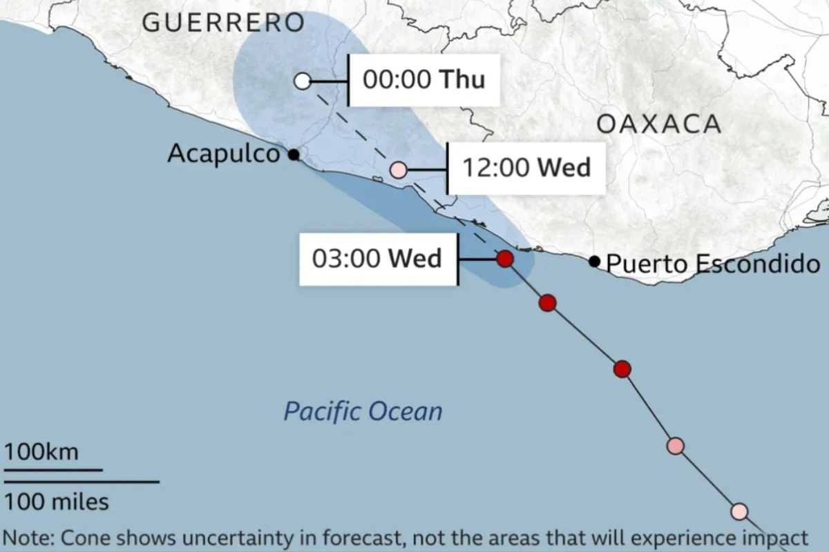 Zosilnenie hurikánu prišlo v stredu večer, kedy z prvej kategórie hurikán zvýšil svoju aktivitu na 3. kategóriu. Vietor do súmraku dosahoval rýchlosť 200km/h, asi 85 km od Puerto Angel. Aktuálne sa predpokladá, že hurikán príde do blízkosti letoviska Acapulco. To bolo naposledy hurikánom zničené v októbri 2023. Hurikán Otis (5. kategória) si vyžiadal životy najmenej 52 ľudí a 32 z nich bolo nezvestných. Búrka navyše vážne poškodila budovy a hotely v populárnom letovisku.