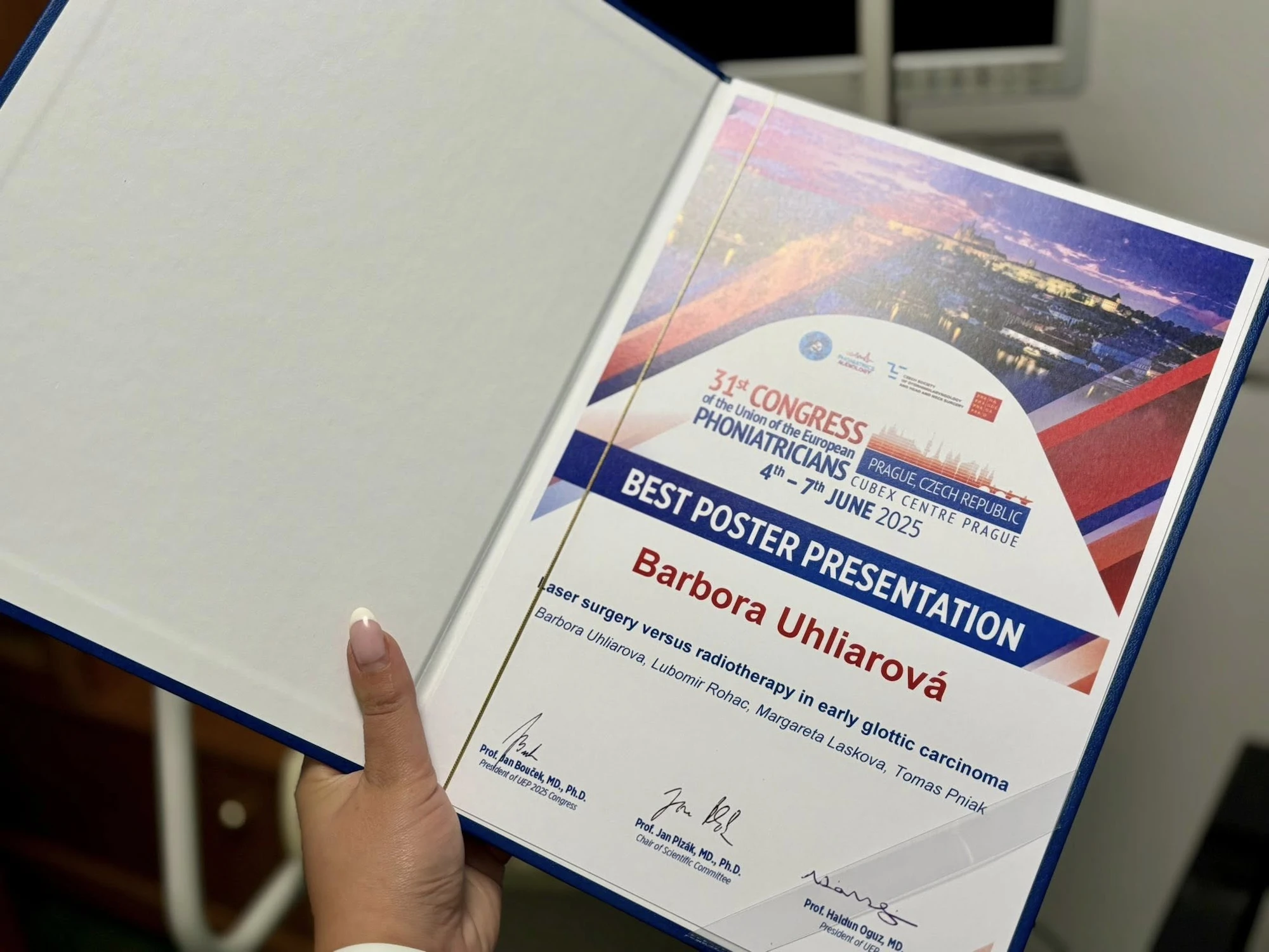 Na prestížnom európskom kongrese v Prahe získala MUDr. Barbora Uhliarová, PhD., MPH z oddelenia otorinolalaryngológie z Rooseveltovej nemocnice ocenenie za jednu z najlepších prezentácií.