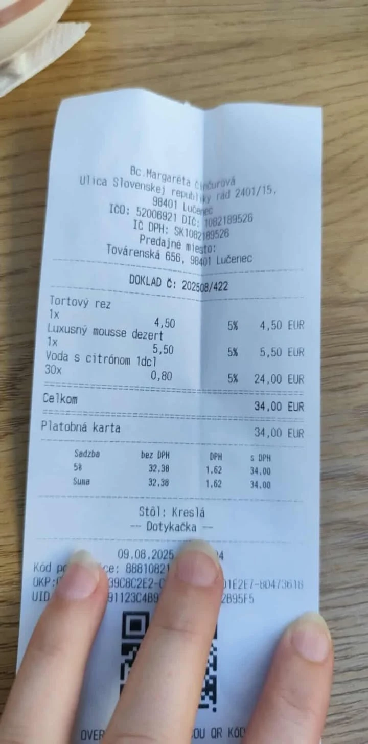 V Lučenci sa v posledných dňoch rozvírila diskusia o cenách nápojov v miestnych kaviarňach, keď jedna z návštevníčok zdieľala svoj účet za 3 litre vody s citrónom, za ktorý zaplatila 24 eur. Tento prípad vyvolal živé reakcie obyvateľov, ktorí sa začali vyjadrovať k tomu, či ide o bežnú cenu, prehnanú sumu alebo nedorozumenie.