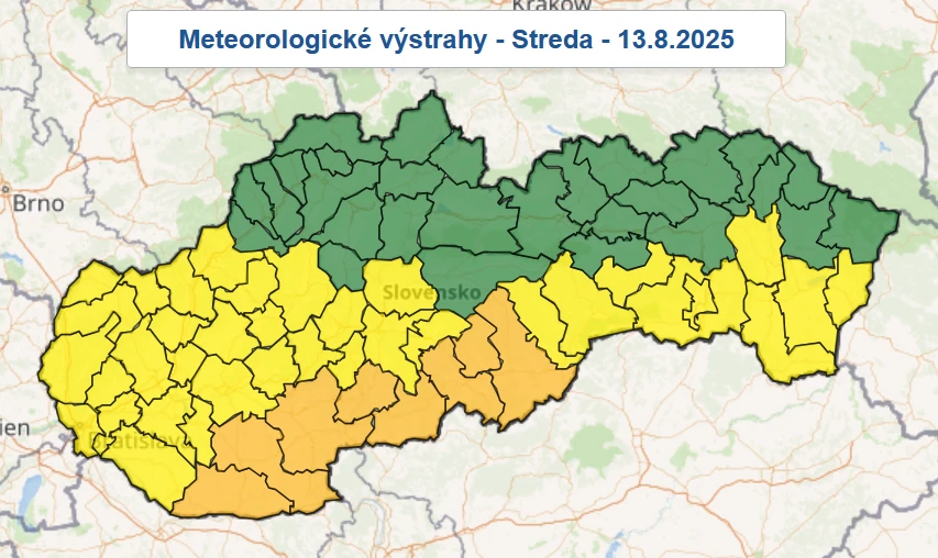 V Banskobystrickom kraji platia výstrahy prvého stupňa pre okresy Banská Bystrica, Žiar nad Hronom, Žarnovica, Banská Štiavnica, Zvolen, Detva a Revúca. V týchto lokalitách sa očakáva, že maximálna teplota vzduchu bude dosahovať 33 až 34 °C.