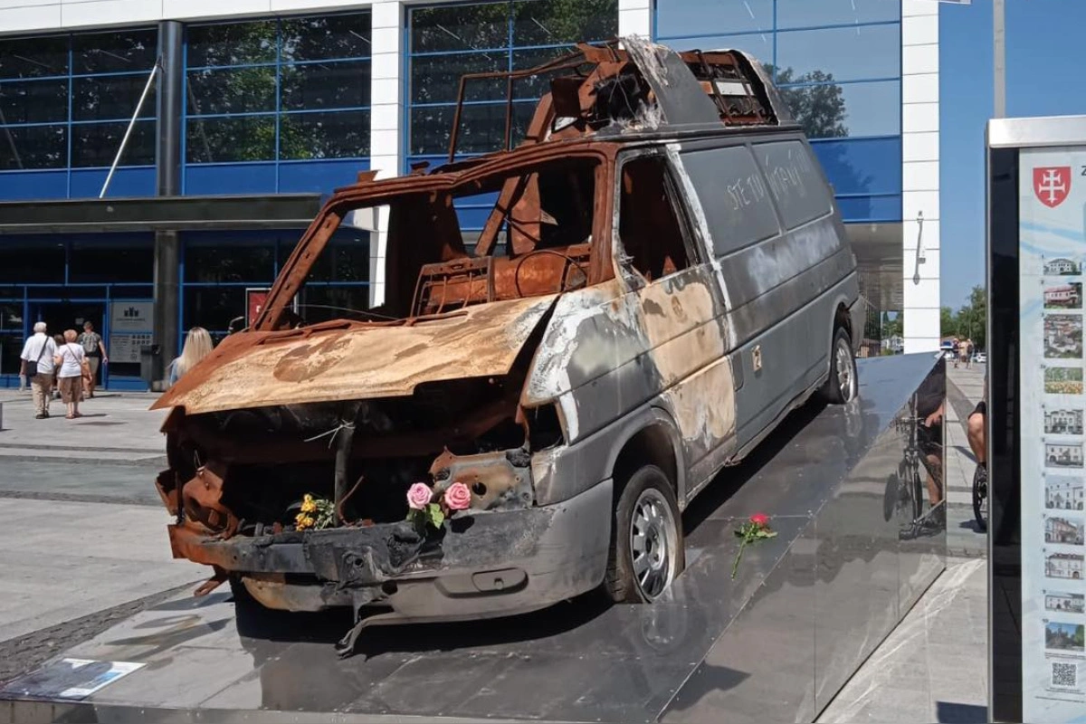 Vo Zvolene je od pondelka vystavená zničená sanitka Oksana, ktorú Slovensko v roku 2024 darovalo Ukrajine. Vozidlo pôvodne slúžilo na evakuáciu zranených, no len dva mesiace po odovzdaní ho zasiahol ruský dron. Útok neprežili dvaja vojaci a zo sanitky zostal len obhorený vrak.
