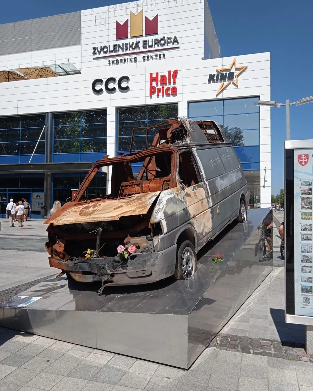 Vo Zvolene nainštalovali rozstrieľanú sanitku Oksanu z Ukrajiny, inštalácia rozdelila obyvateľov na dva tábory