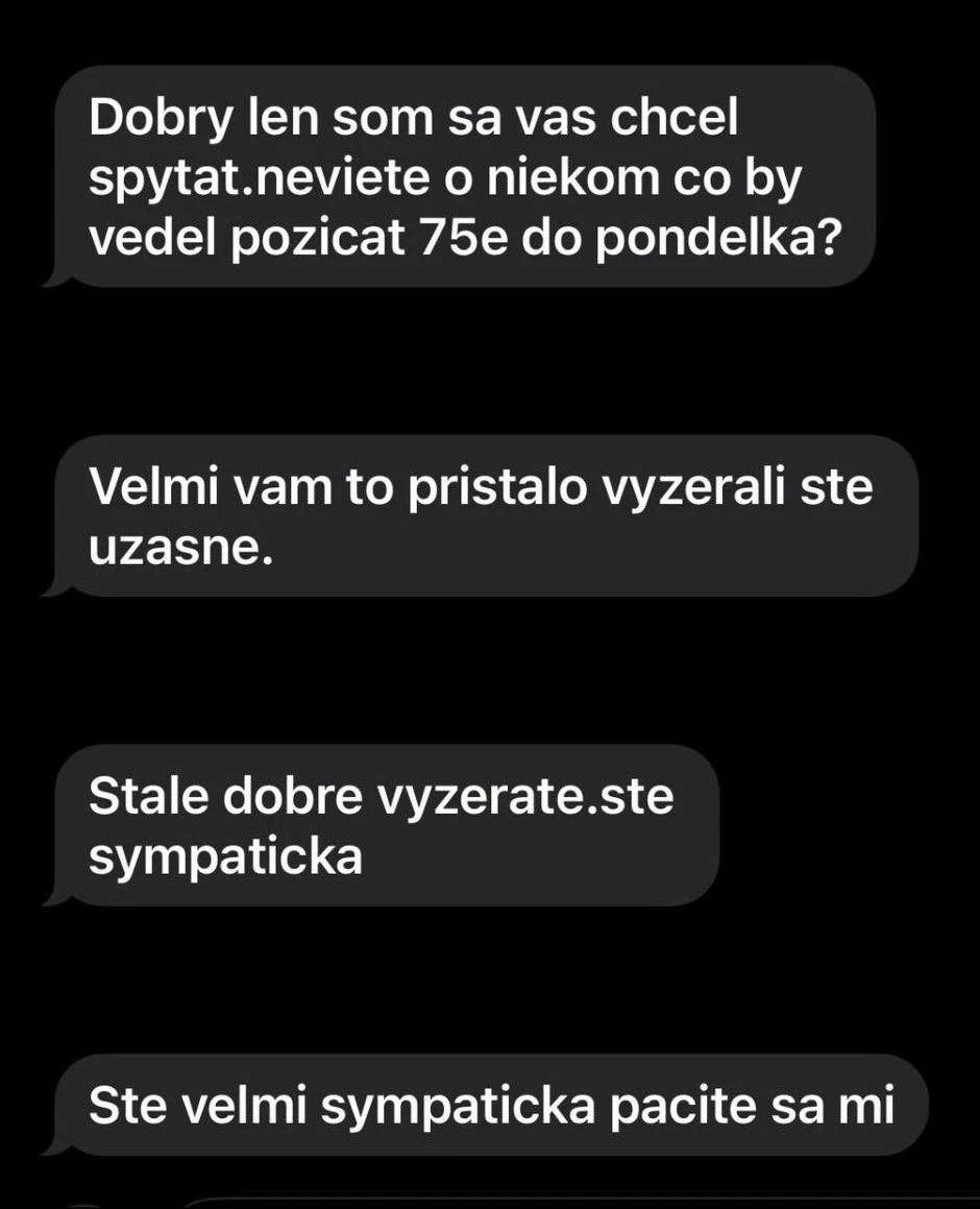 „Mne raz jeden chlapík napísal, či by som nepožičala 100 eur. Odpísala som mu, že ja som dúfala, že ty ma založíš, potrebujem 500 eur. A hneď ma zablokoval a bol pokoj,“ dodala Eva.