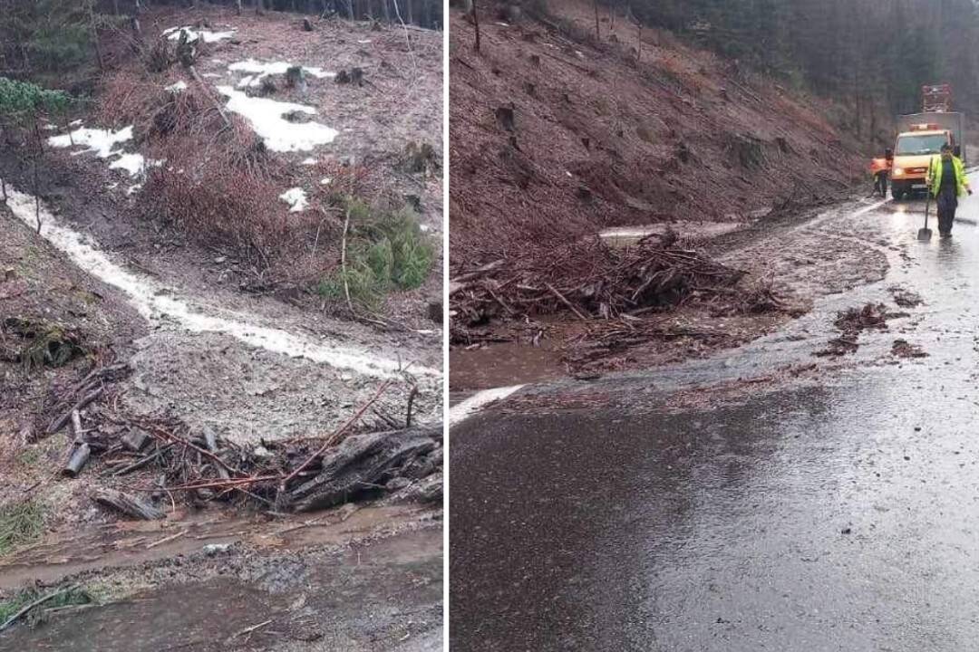 Na frekventovanú cestu prvej triedy I/59 v úseku horského priechodu Donovaly sa zosunula časť rozmočeného svahu. Na ceste v smere na Korytnicu leží hlina, konáre a kamene.