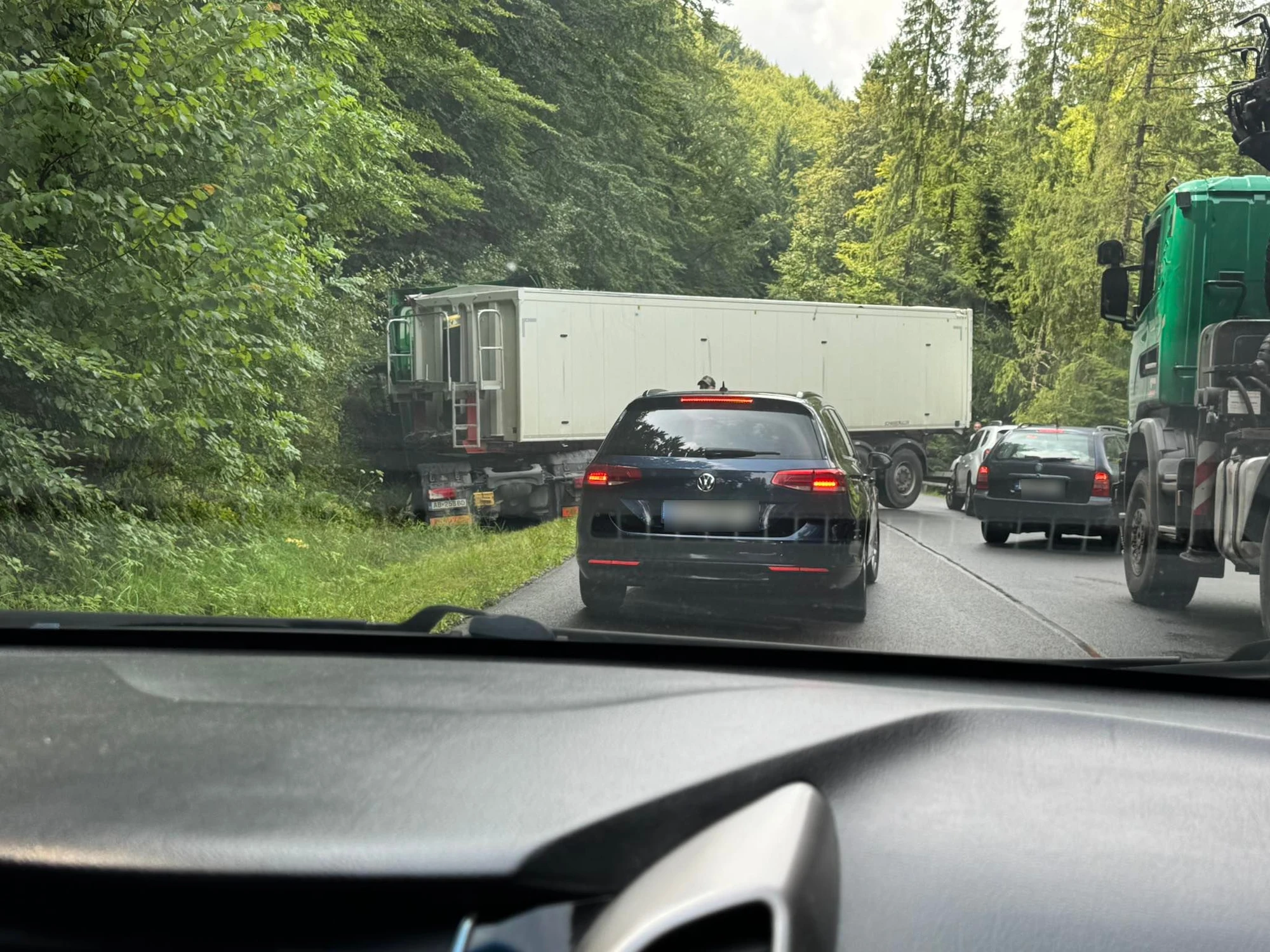 Na ceste II/526 medzi Hriňovou a Detvianskou Hutou sa skrížil kamión, úsek je neprejazdný. Upozornila na to Zelená vlna STVR.