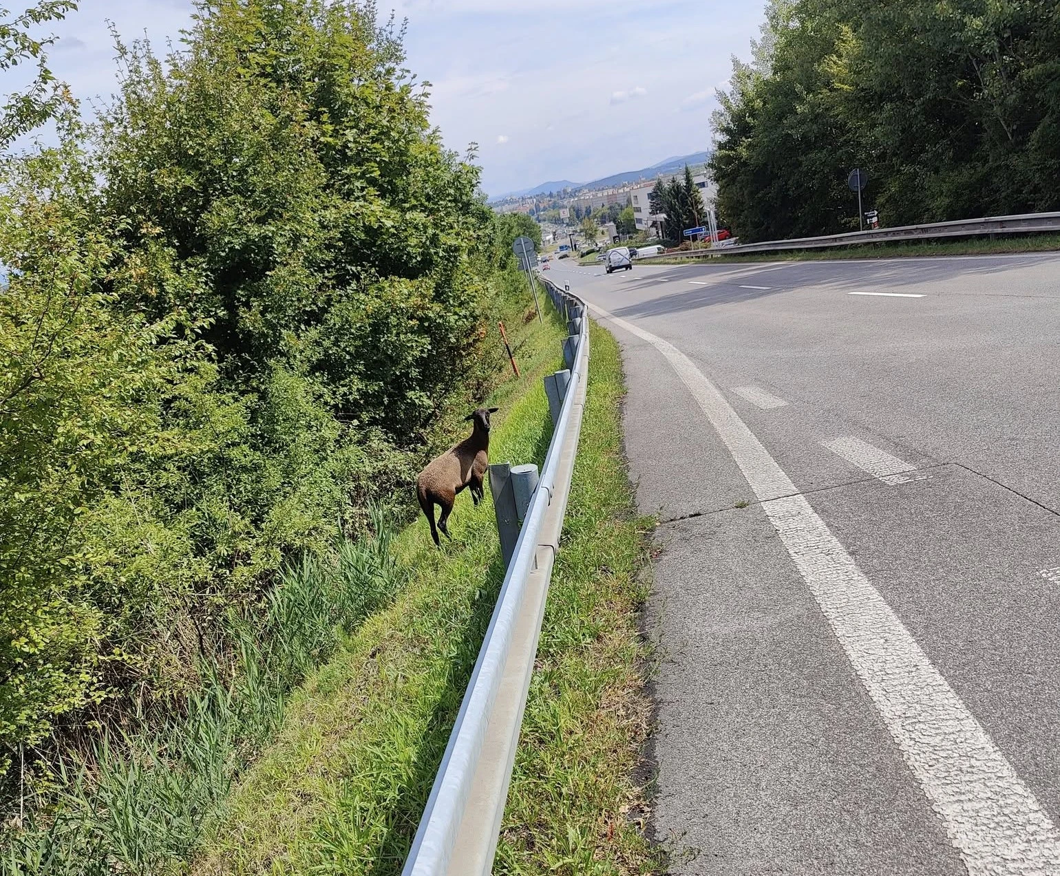 Zvolenčan Michal pridal v piatok popoludní na sociálnu sieť upozornenie spolu s fotografiou: „Hore na Strážach, na úrovni odbočky smer Banská Bystrica, je táto ovečka. Zachráňte ju niekto, prosím pekne!“ Na zábere skutočne vidieť tmavé zvieratko, ktoré až tak bežne bezprostredne vedľa cesty nestretnete, a v meste je šanca ešte menšia.