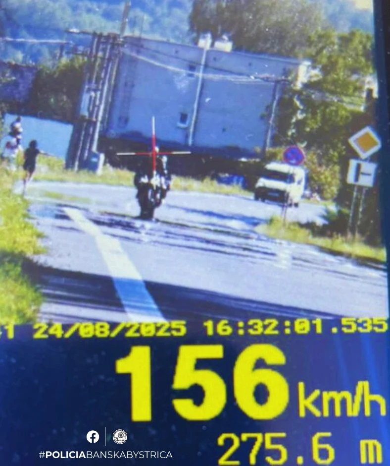 Policajná hliadka Krajského dopravného inšpektorátu v Banskej Bystrici namerala poľského motocyklistu v Hontianskych Tesároch, ako cez obec prechádza rýchlosťou 156 km/h.