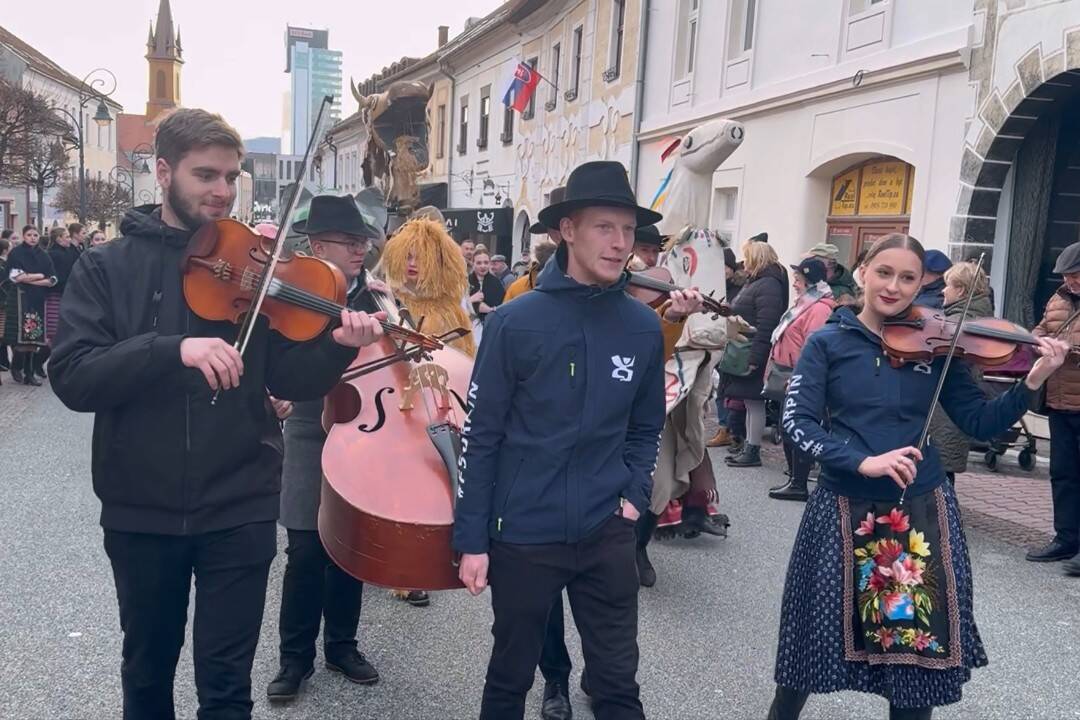 VIDEO: Fašiangový sprievod Banskou Bystricou vyvrcholil na Námestí SNP. Takto sa zabávali miestni obyvatelia