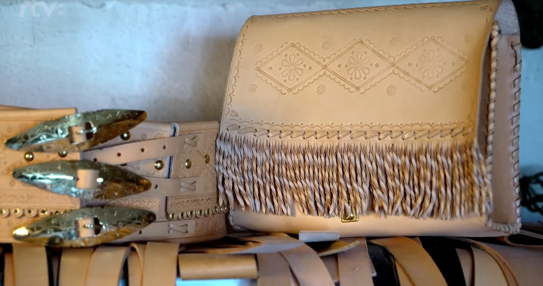 Na výrobu používa kravskú kožu - nefarbenú prírodnú hladenicu. „Ja musím kožu pripraviť, navlhčiť. A keď opasok, tak ho musím zohnúť v troje. Keby som chcel zajtra, tak dneska poobede ho namočím a len zajtra ho môžem vytláčať. Keď to povytláčam, zase sa odloží,“ uviedol pre STVR Krnáč.