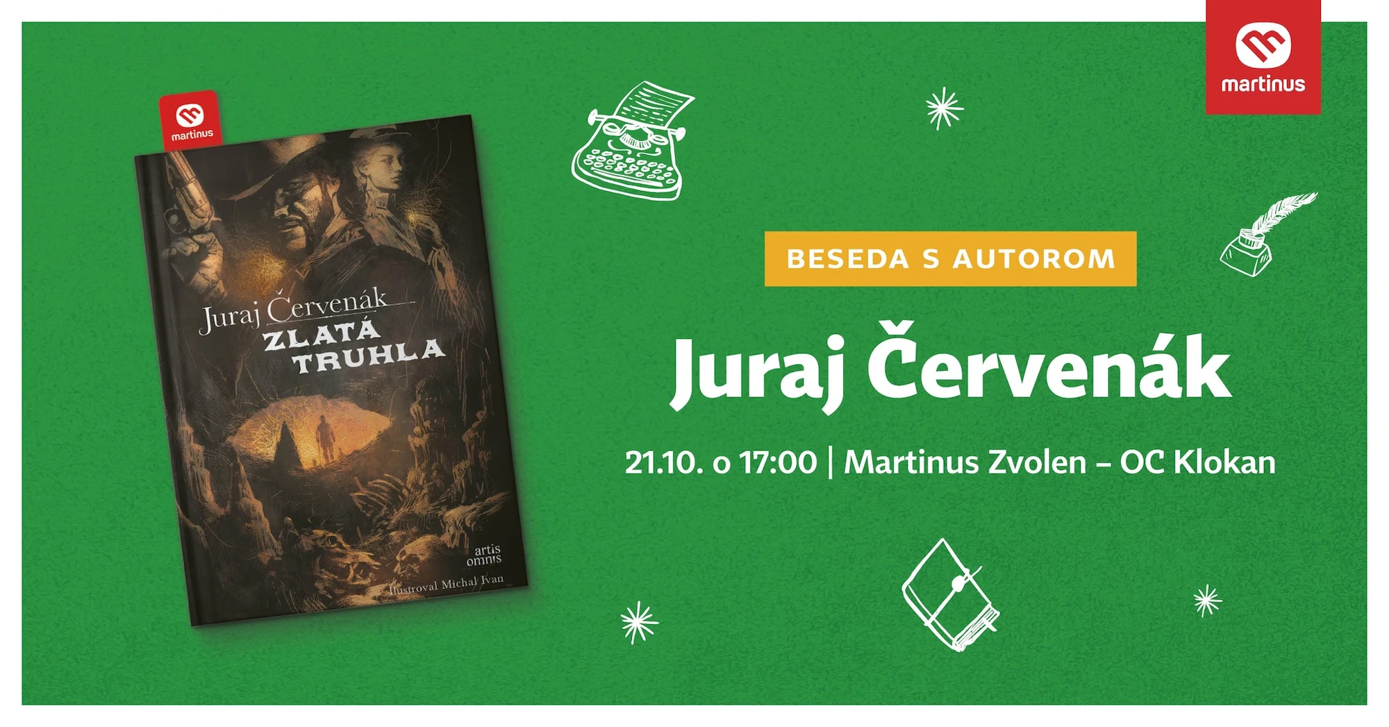 Fanúšikovia Juraja Červenáka sa môžu s autorom stretnúť osobne už v utorok vo zvolenskom Martinuse. „Príďte na stretnutie s majstrom historicko-dobrodružnej fantastiky Jurajom Červenákom, ktorý prichádza predstaviť Zlatú truhlu, pokračovanie úspešného románu Zakliaty kláštor z cyklu Šarkanove poklady,“ píše sa v pozvánke na podujatie.