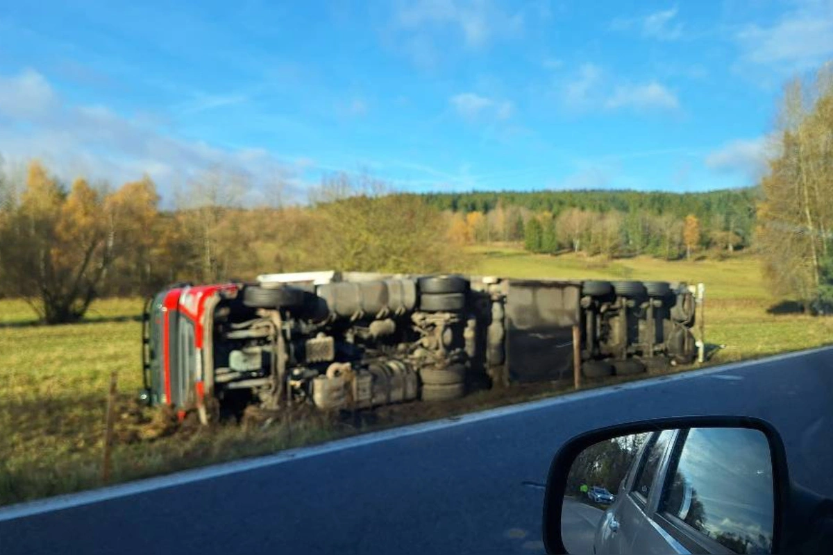 Za Kremnickými Baňami havarovalo nákladné auto, skončilo prevrátené mimo cesty