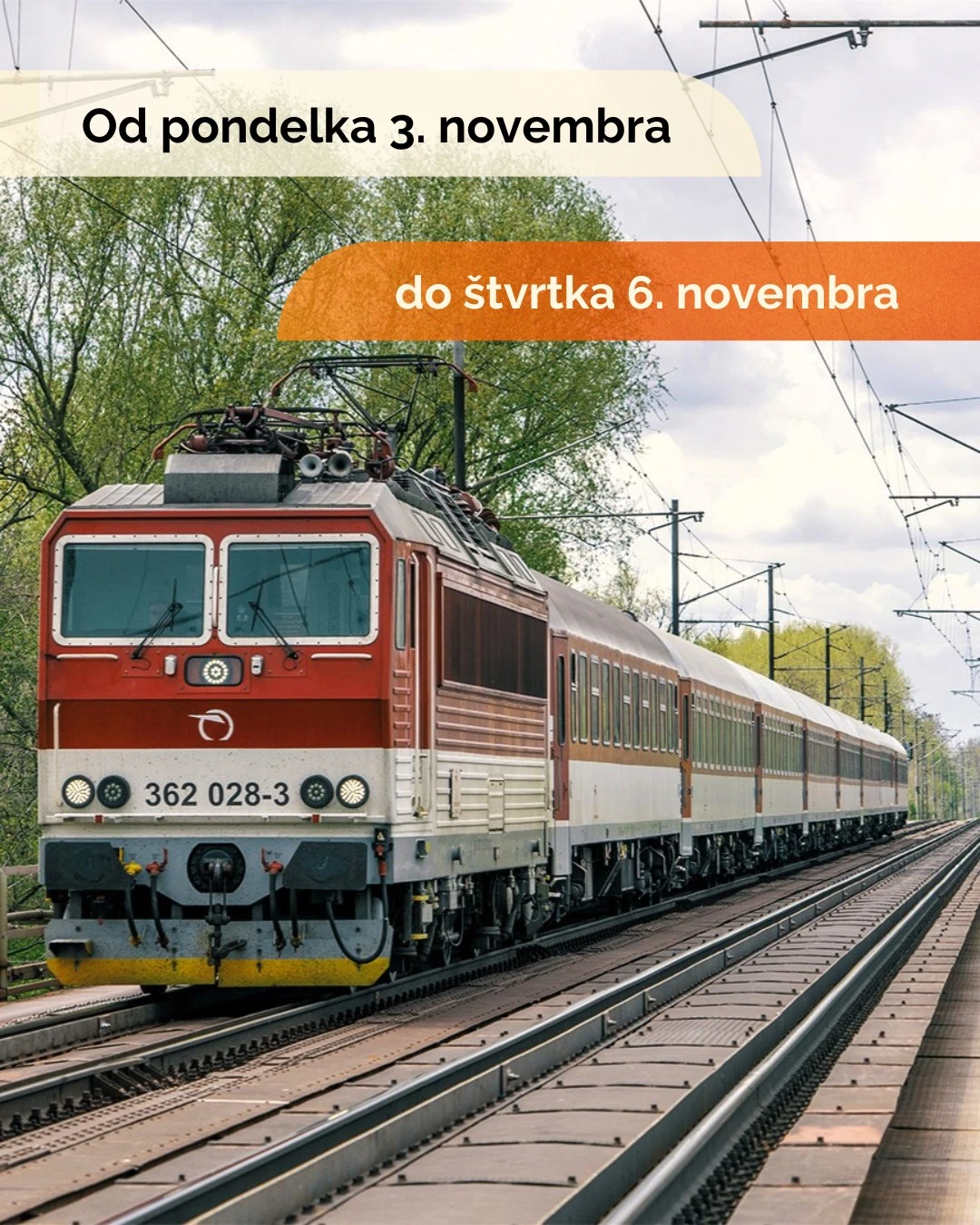Regionálne vlaky budú počas výluky nahradené autobusmi v úseku Úľany nad Žitavou – Šurany. Od piatka 7. novembra budú všetky vlaky URPÍN opäť jazdiť z a na hlavnú stanicu v Bratislave. ZSSK ďakuje cestujúcim za pochopenie a trpezlivosť počas výluky.