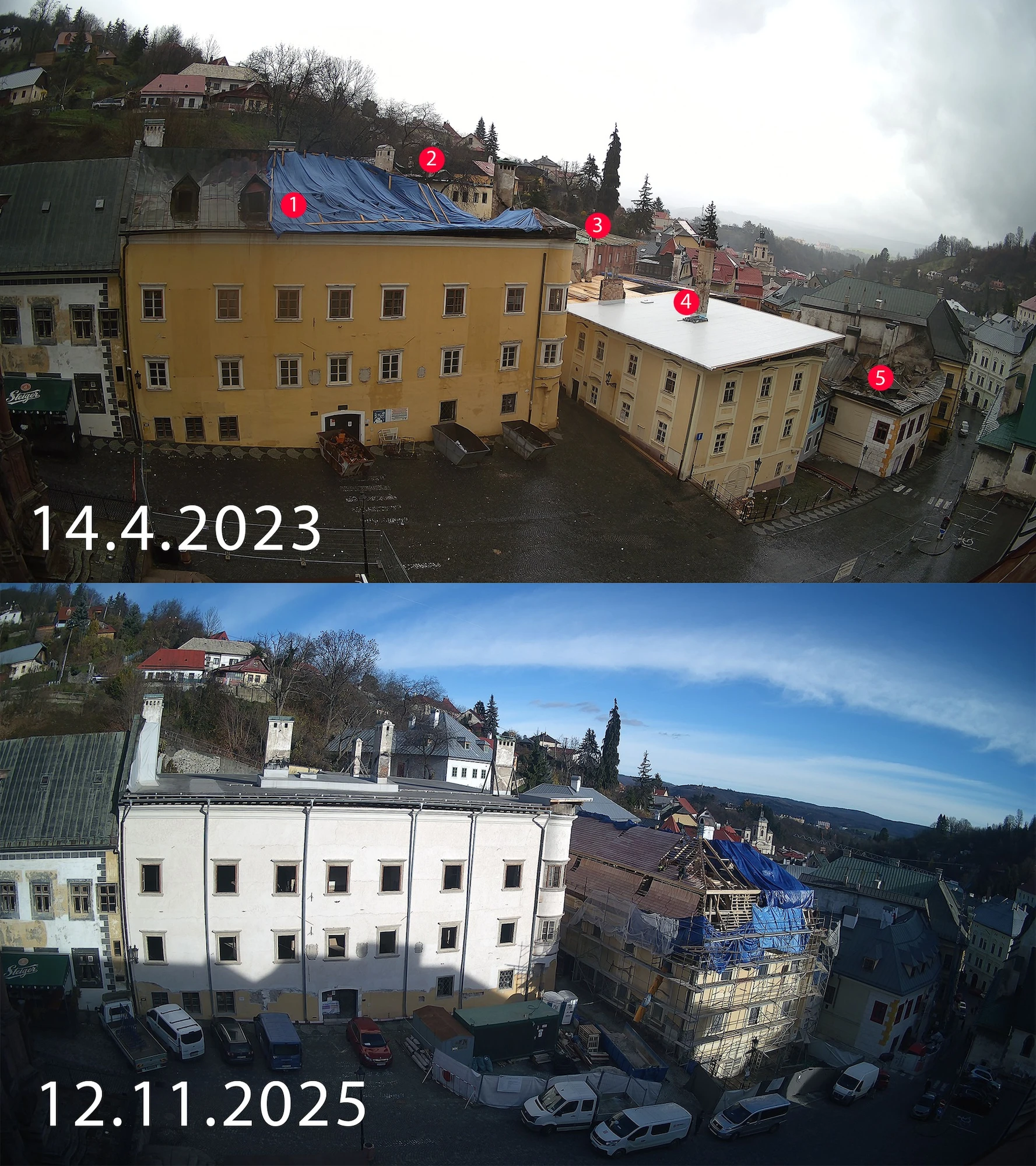 Po vyše dvoch rokoch od nešťastia sú viditeľné výsledky náročnej obnovy. Aktuálnu fotografiu v porovnaní so záberom z roku 2023 pridal na sociálnu sieť Daniel s popisom: „Za obdobie 14.4.2023 až 12.11.2025 je pekne vidieť 5 veľkých zmien, ktoré sú označené červenou bodkou, v rekonštrukcii - obnove zhorených striech po požiari.“